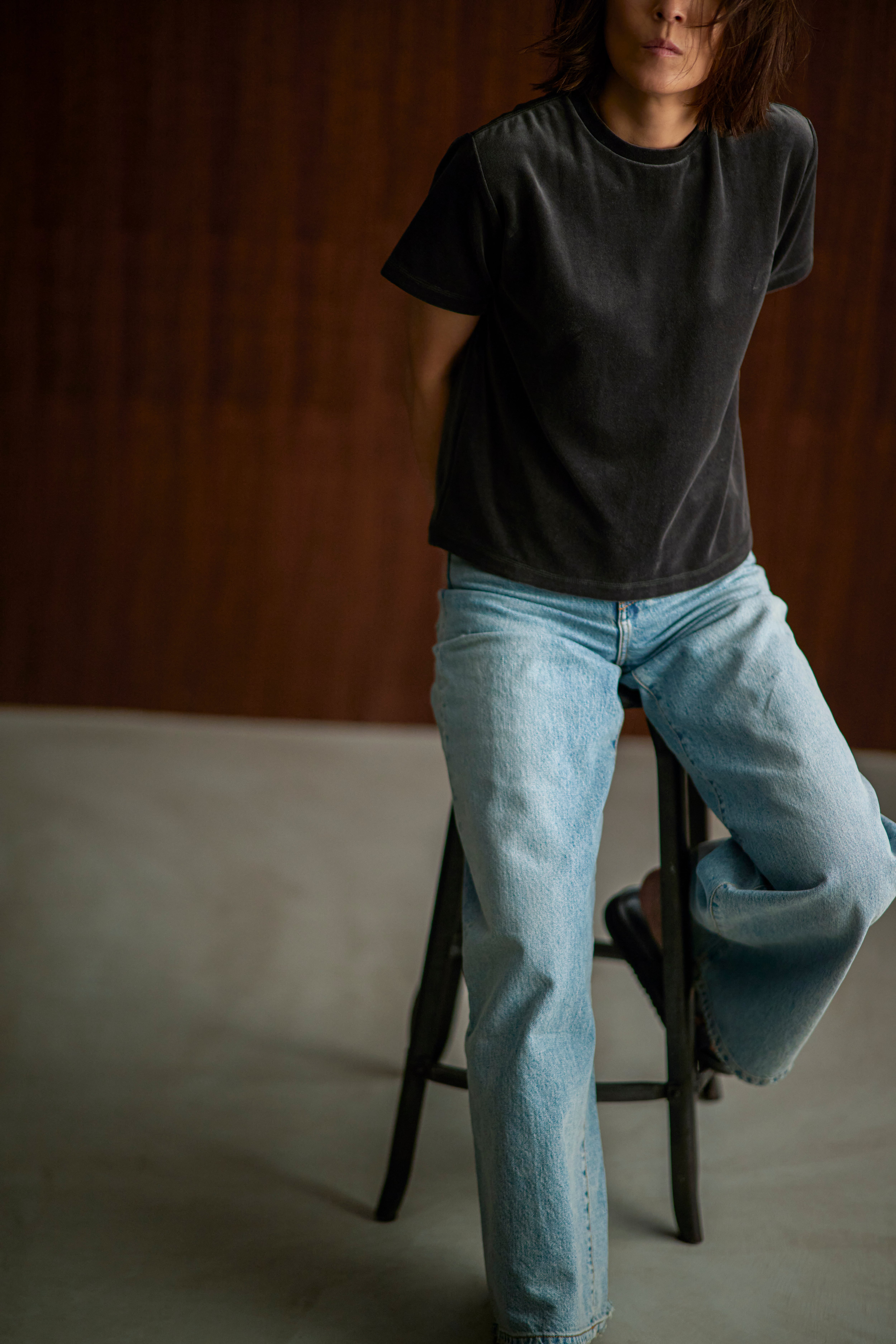 今回誕生したベロアのsimple comfortable Teeはパンツにもスカートにも合わせやすい丈感と