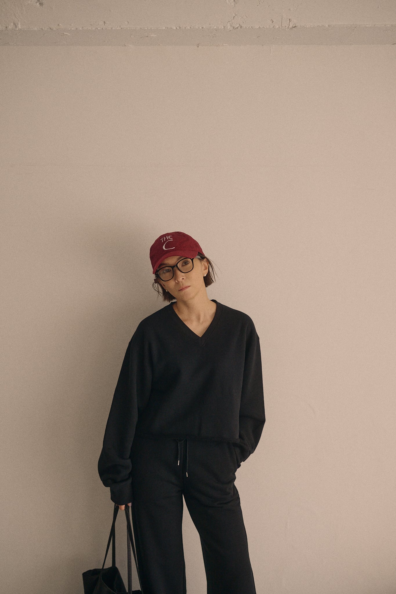 このブランドのコンセプトの旅にはもちろん、普段も着れるスウェットスタイルに。