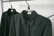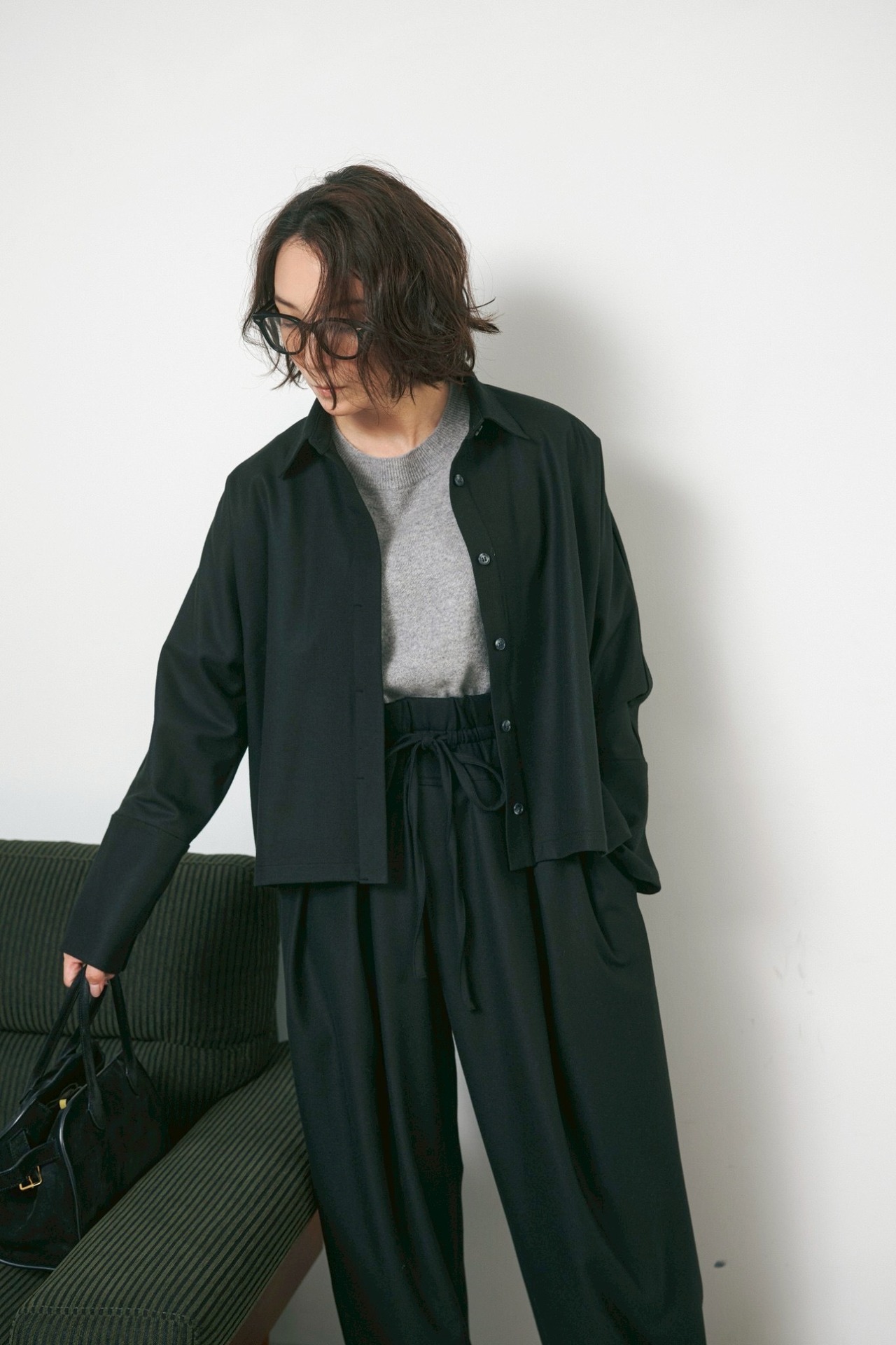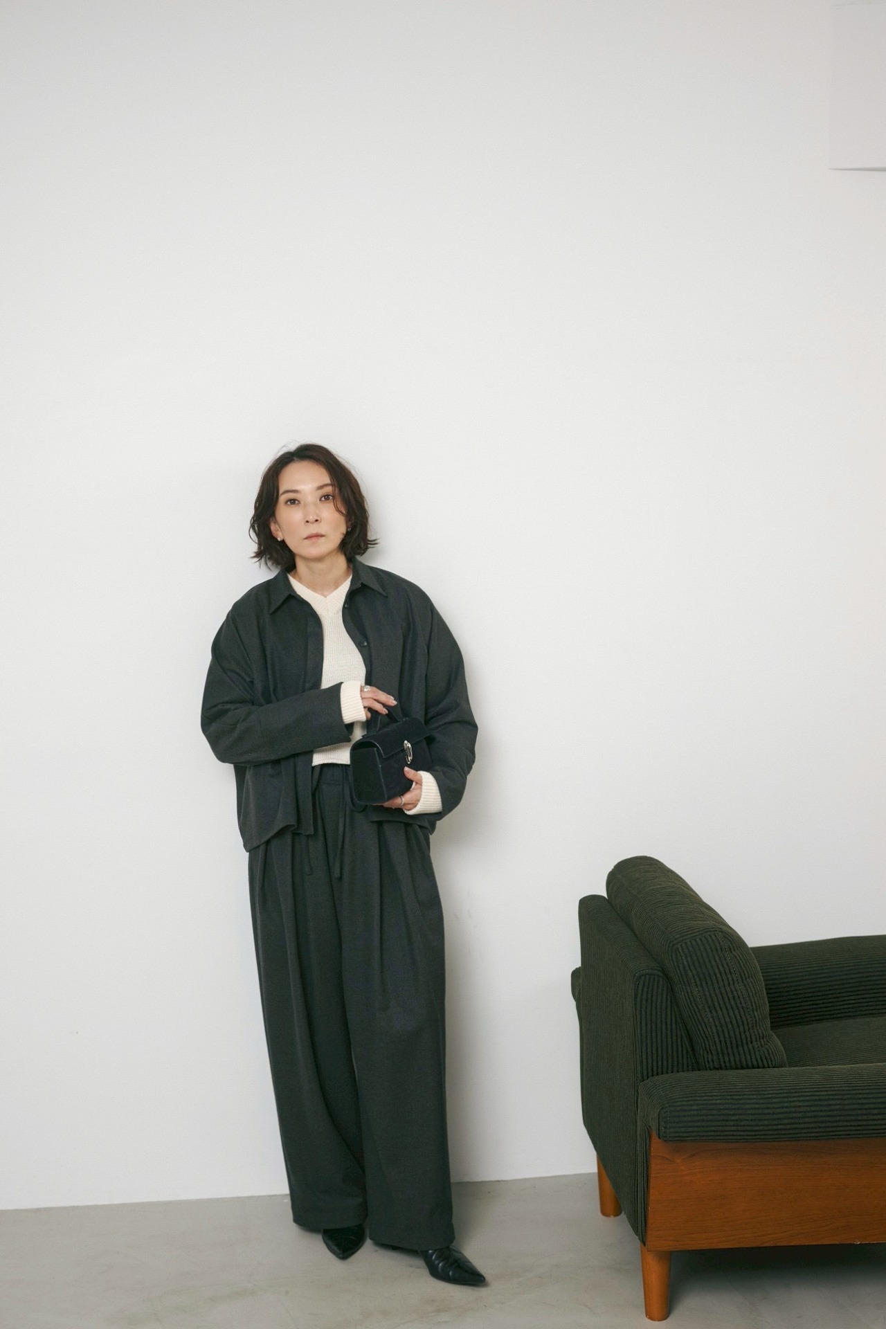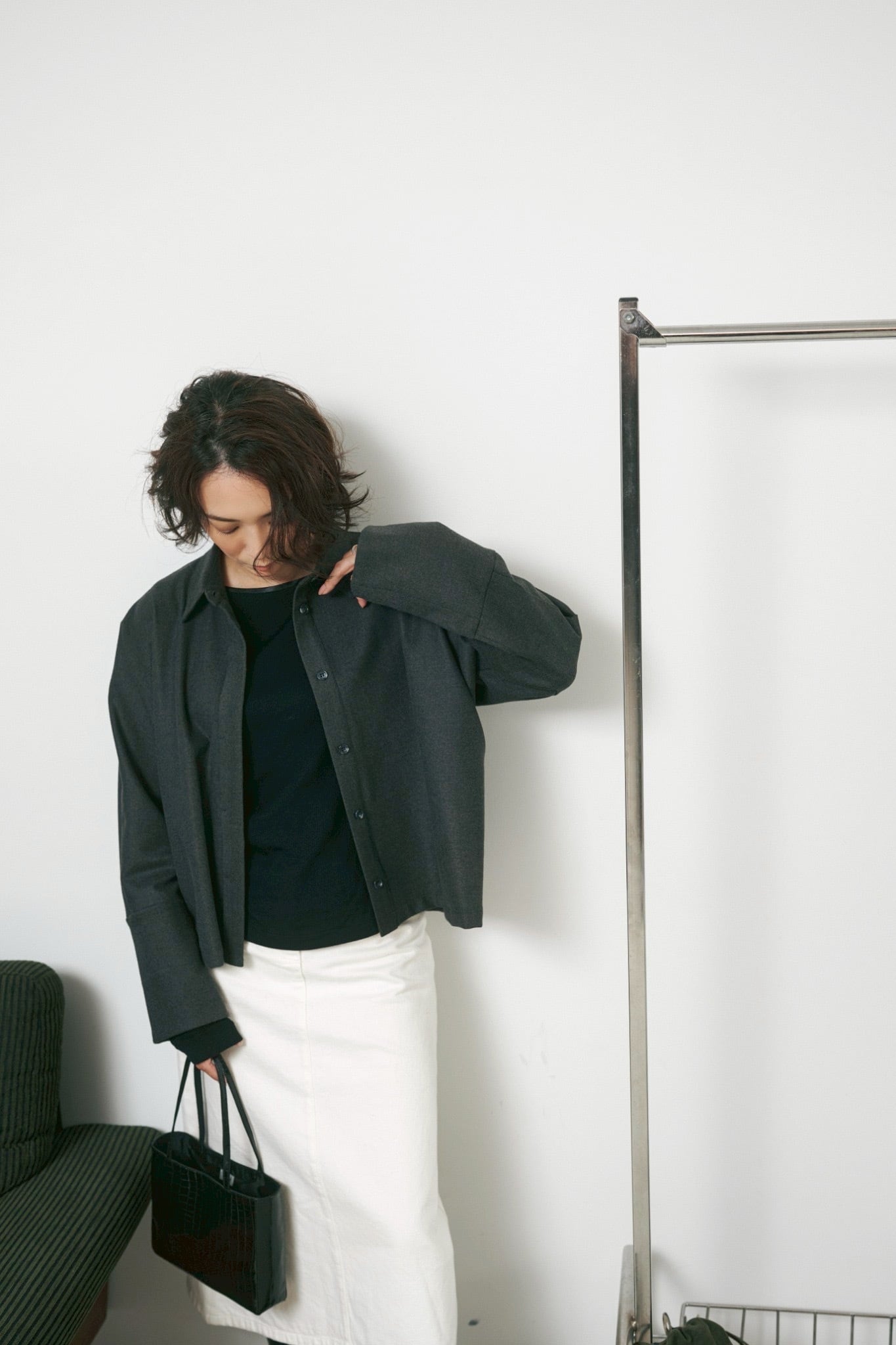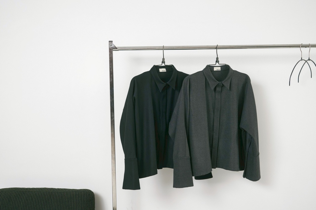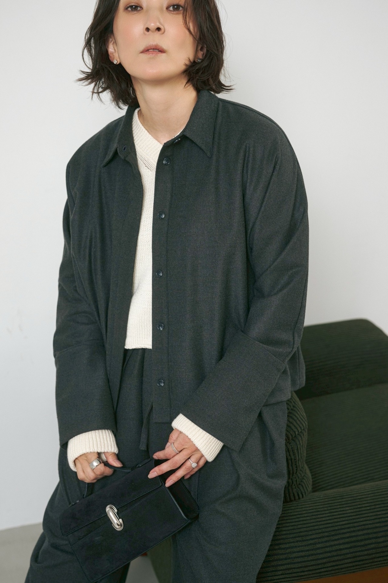 上まで閉じてきちんと感を出せばセレモニーや冠婚葬祭にも着ていただけますし、羽織としてアウターがわりに着ていただける季節もあり、ニットと重ね着していただいても十分な袖の幅と身幅にこだわってお作りしました。
