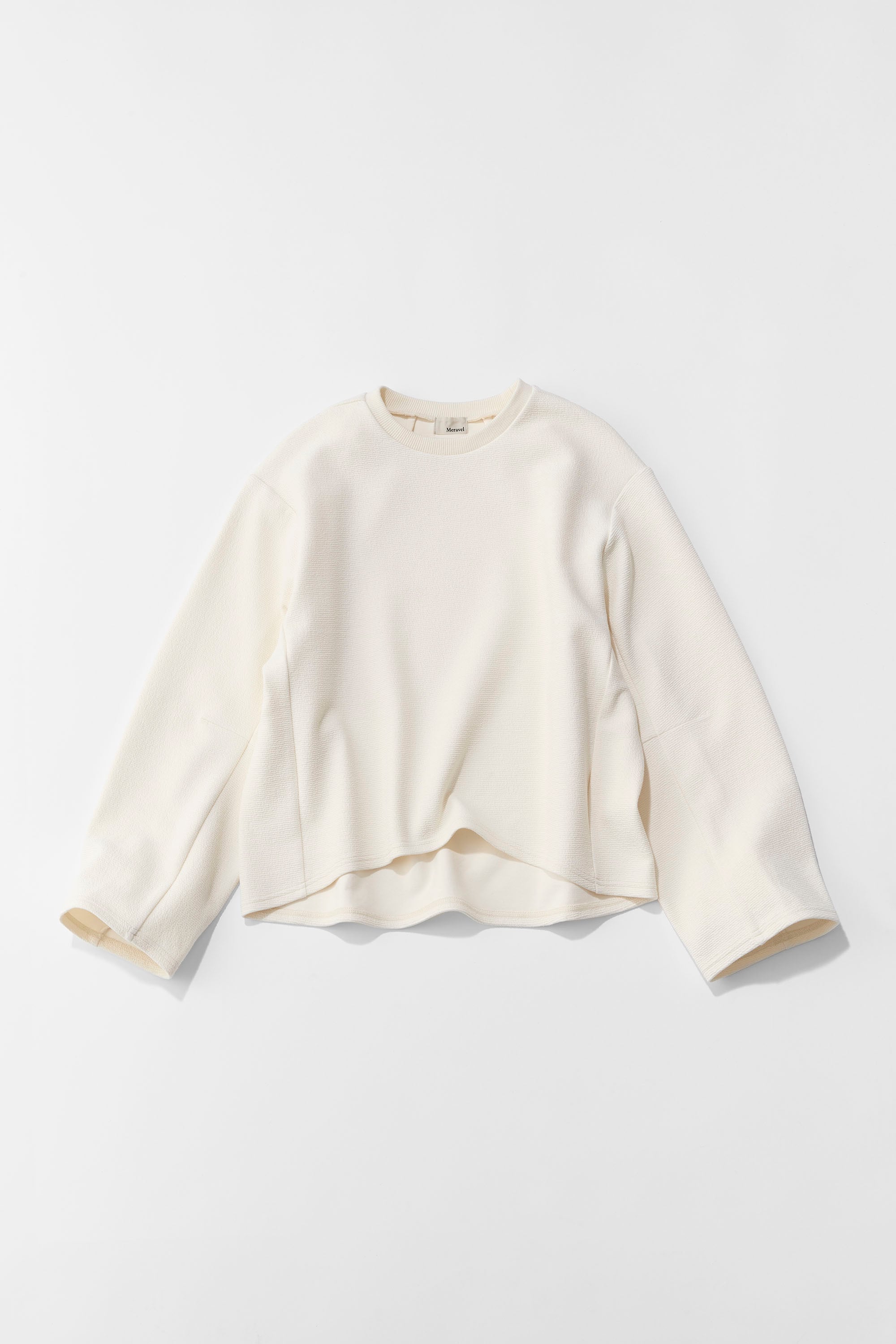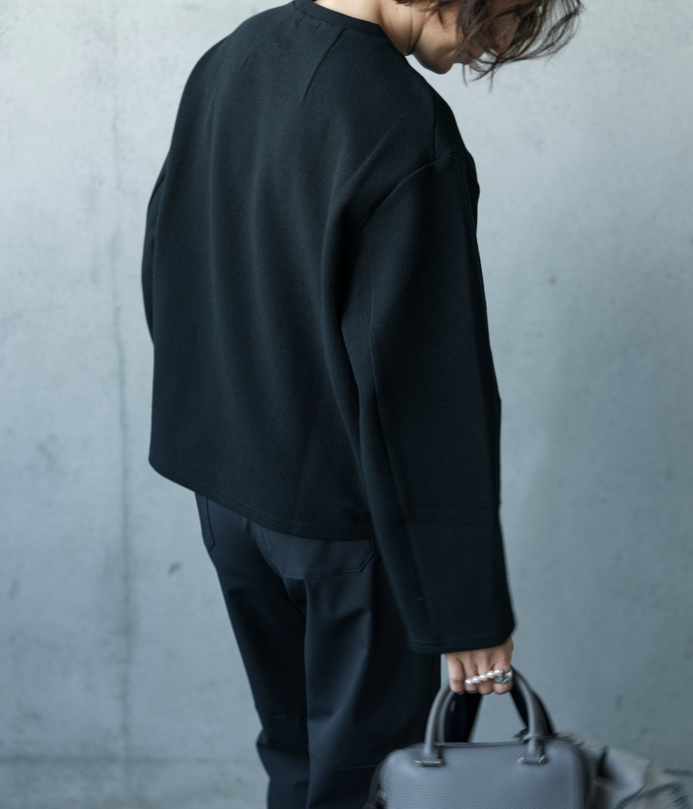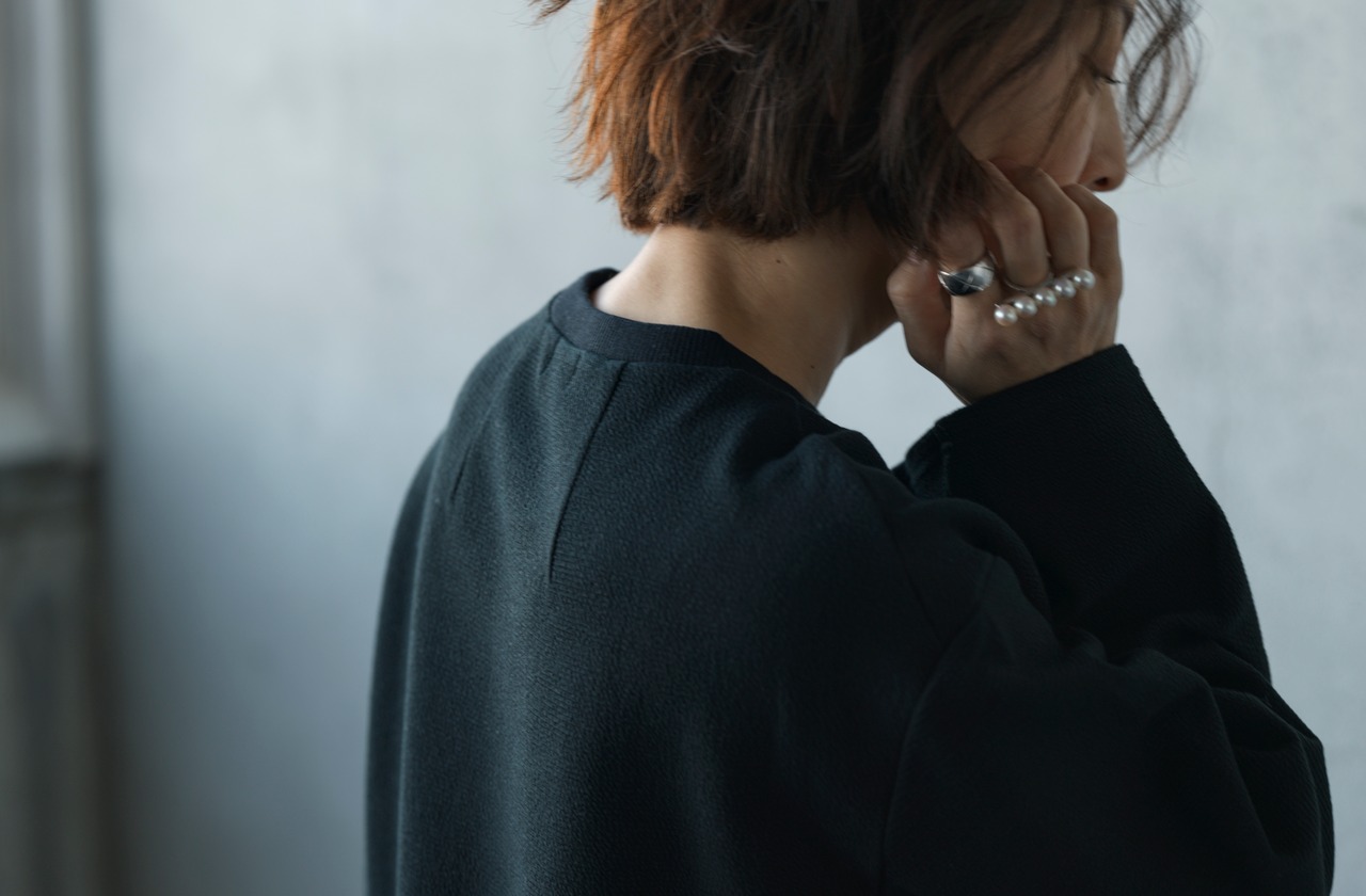 スウェットより綺麗目に見えて、長袖のTシャツよりしっかりしたデザイン。落ち感のある素材感と、リブのない袖口、背中と袖の内側に切替を入れることで立体的に見えるデザインにこだわりました。
