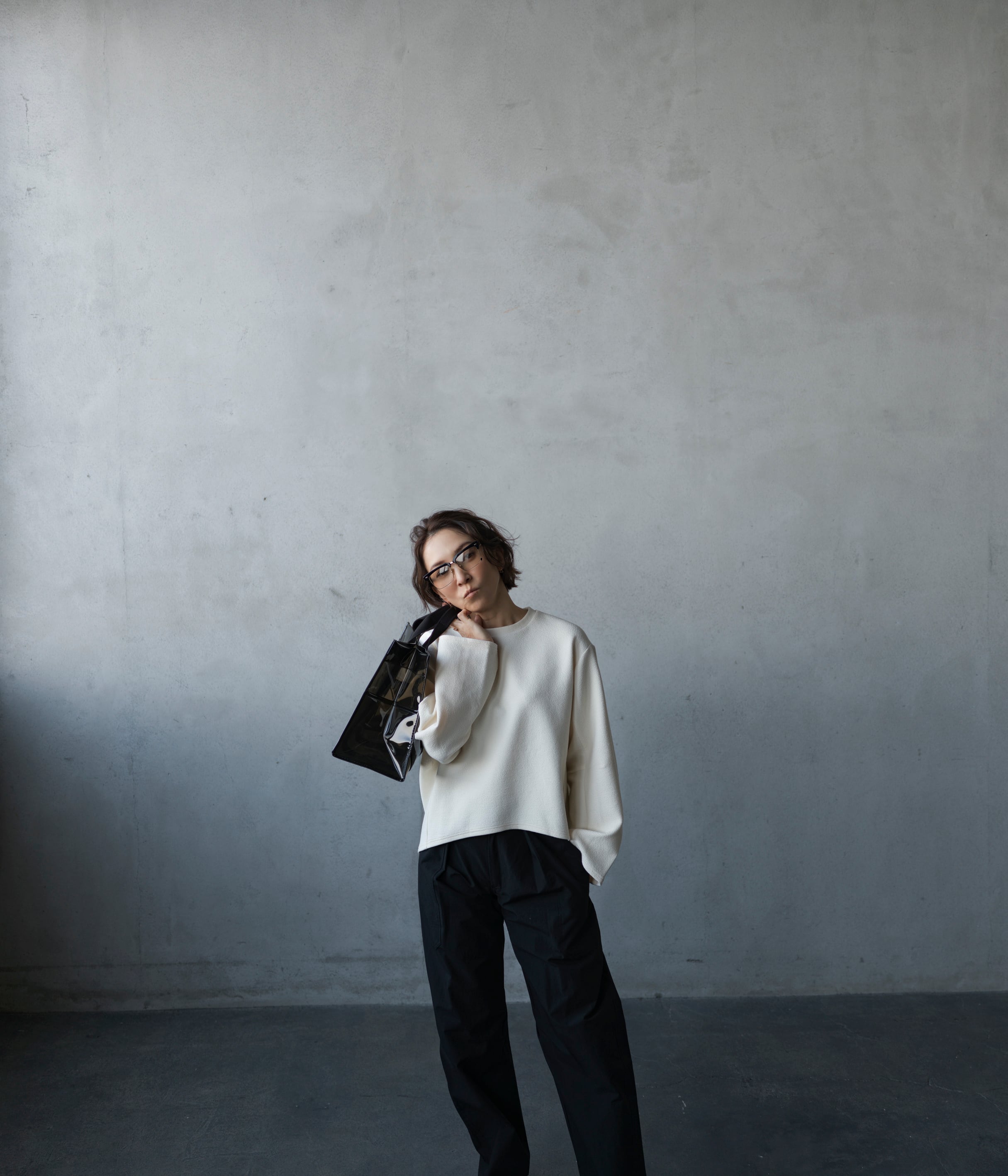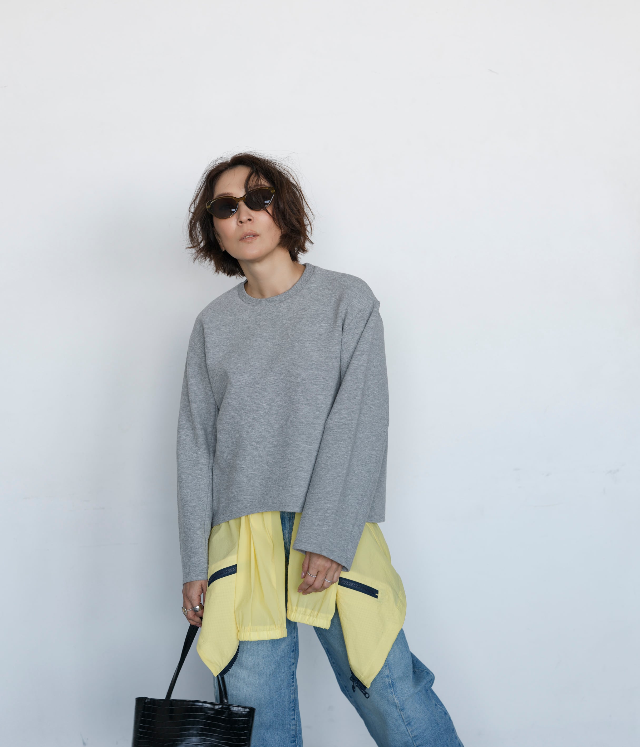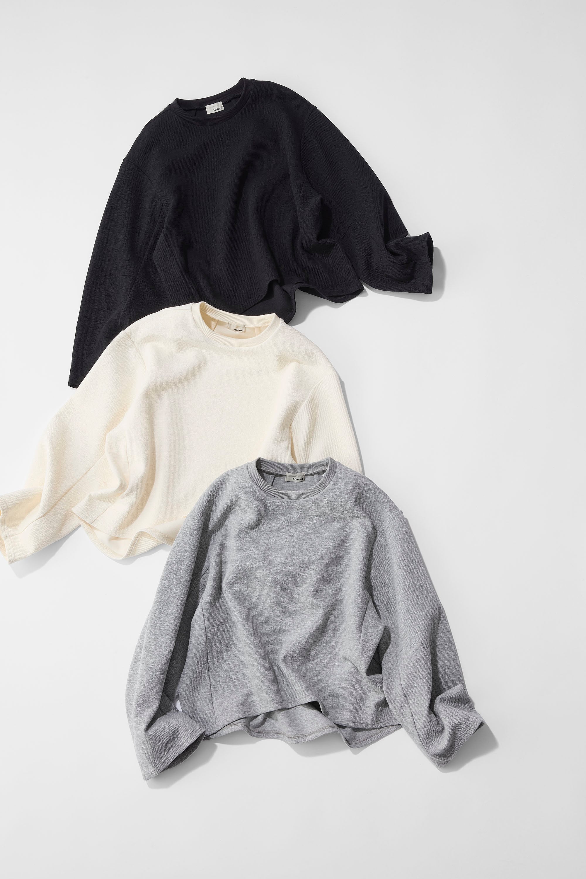 スウェットより綺麗目に見えて、長袖のTシャツよりしっかりしたデザイン。落ち感のある素材感と、リブのない袖口、背中と袖の内側に切替を入れることで立体的に見えるデザインにこだわりました。