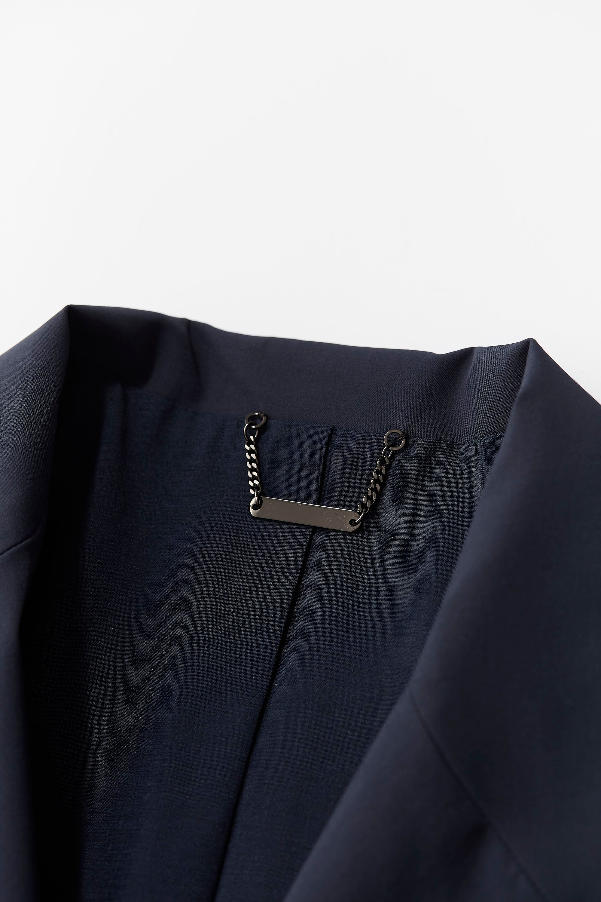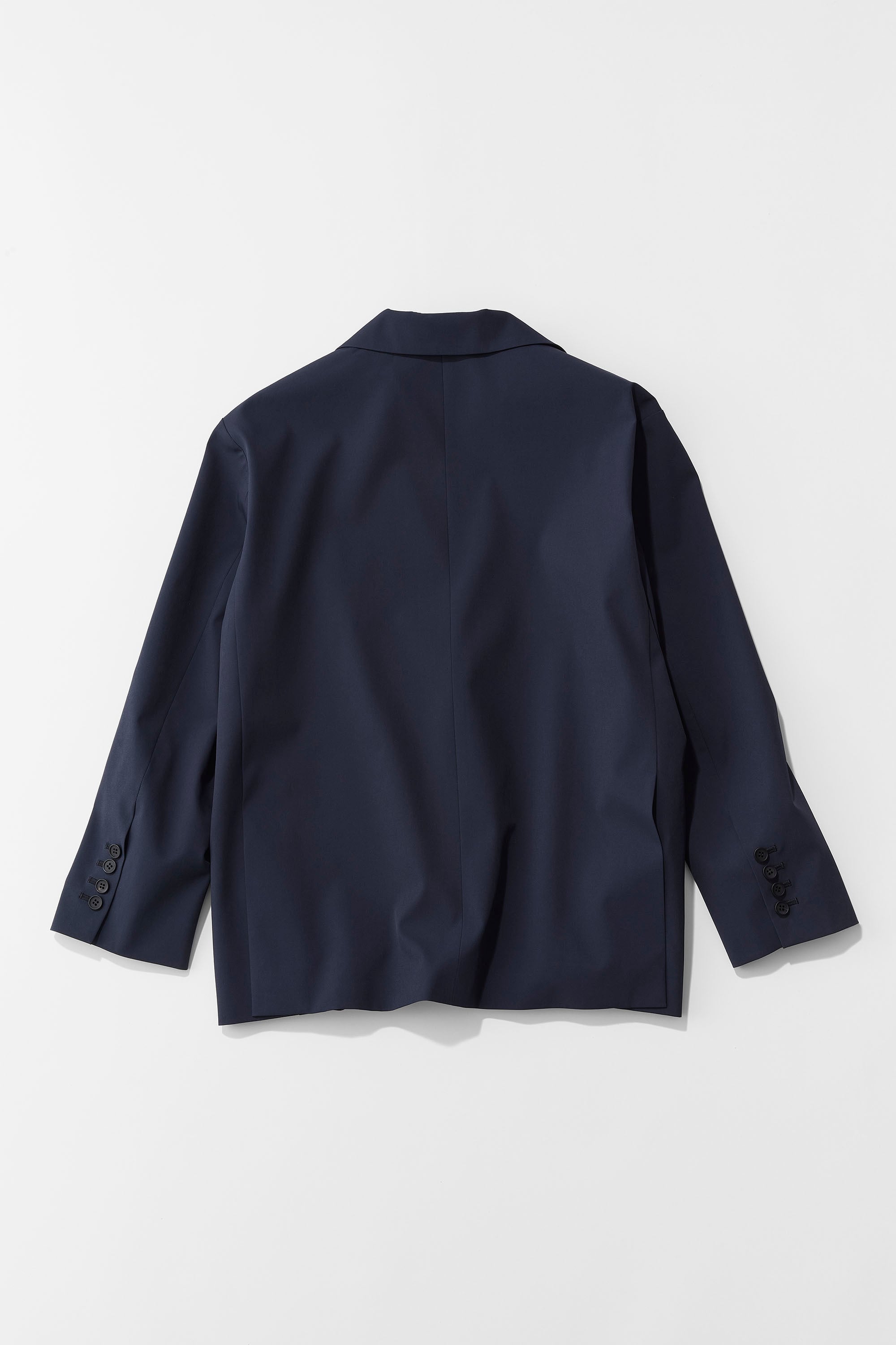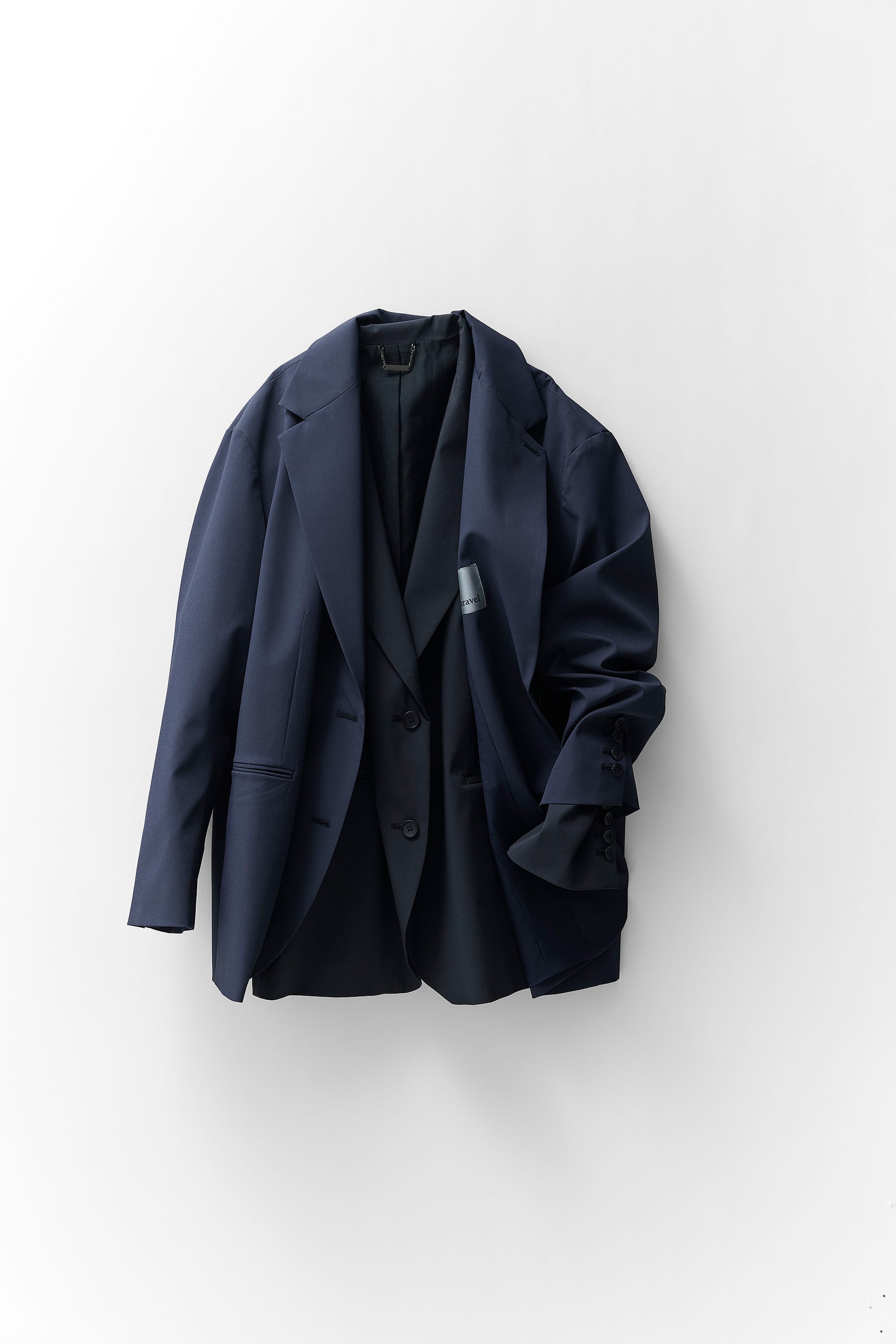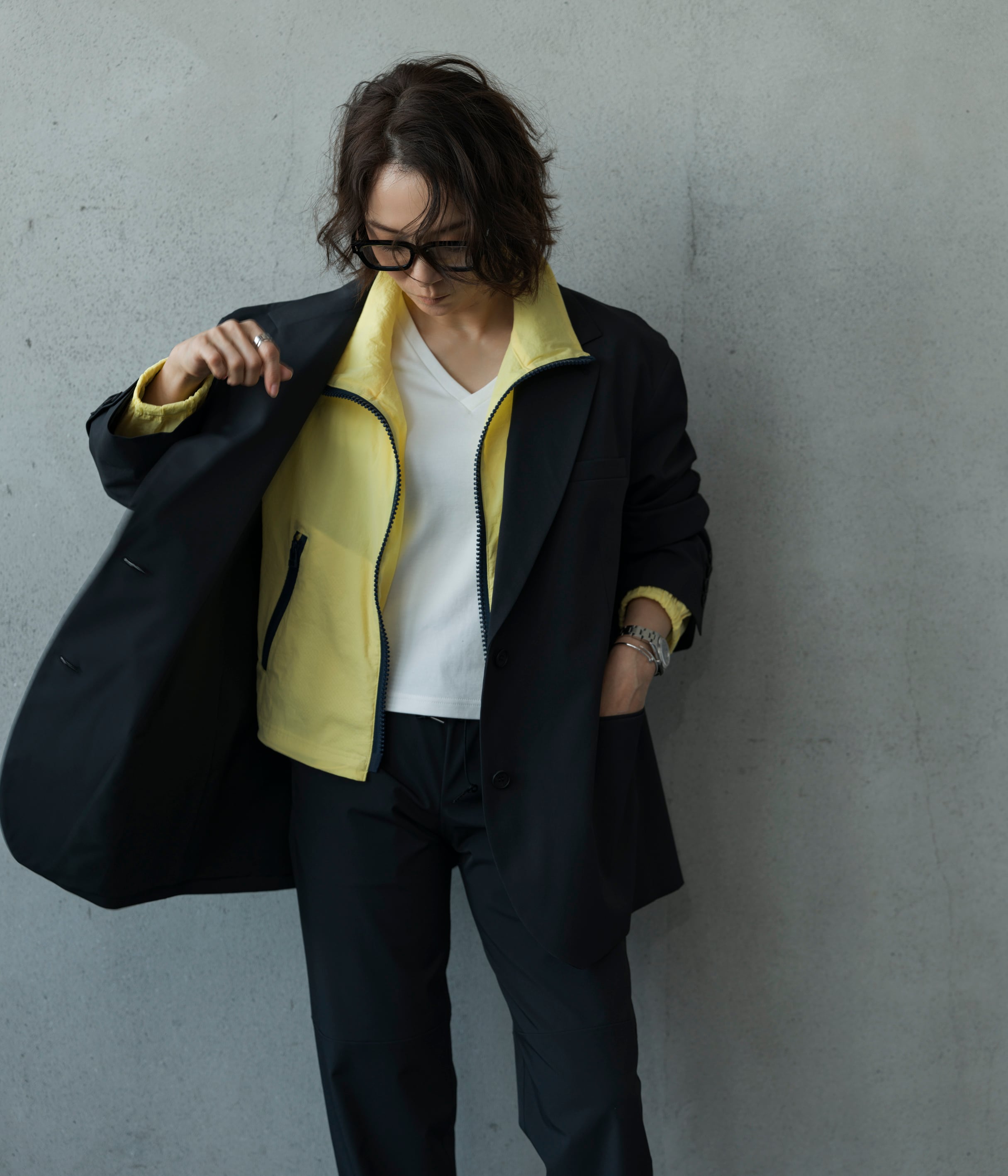 とにかく軽いのと、防シワの機能もあるので旅先に一枚持って行く羽織物としても活躍するはず。普段ジャケットを着ない方にもアウター感覚で着ていただける。