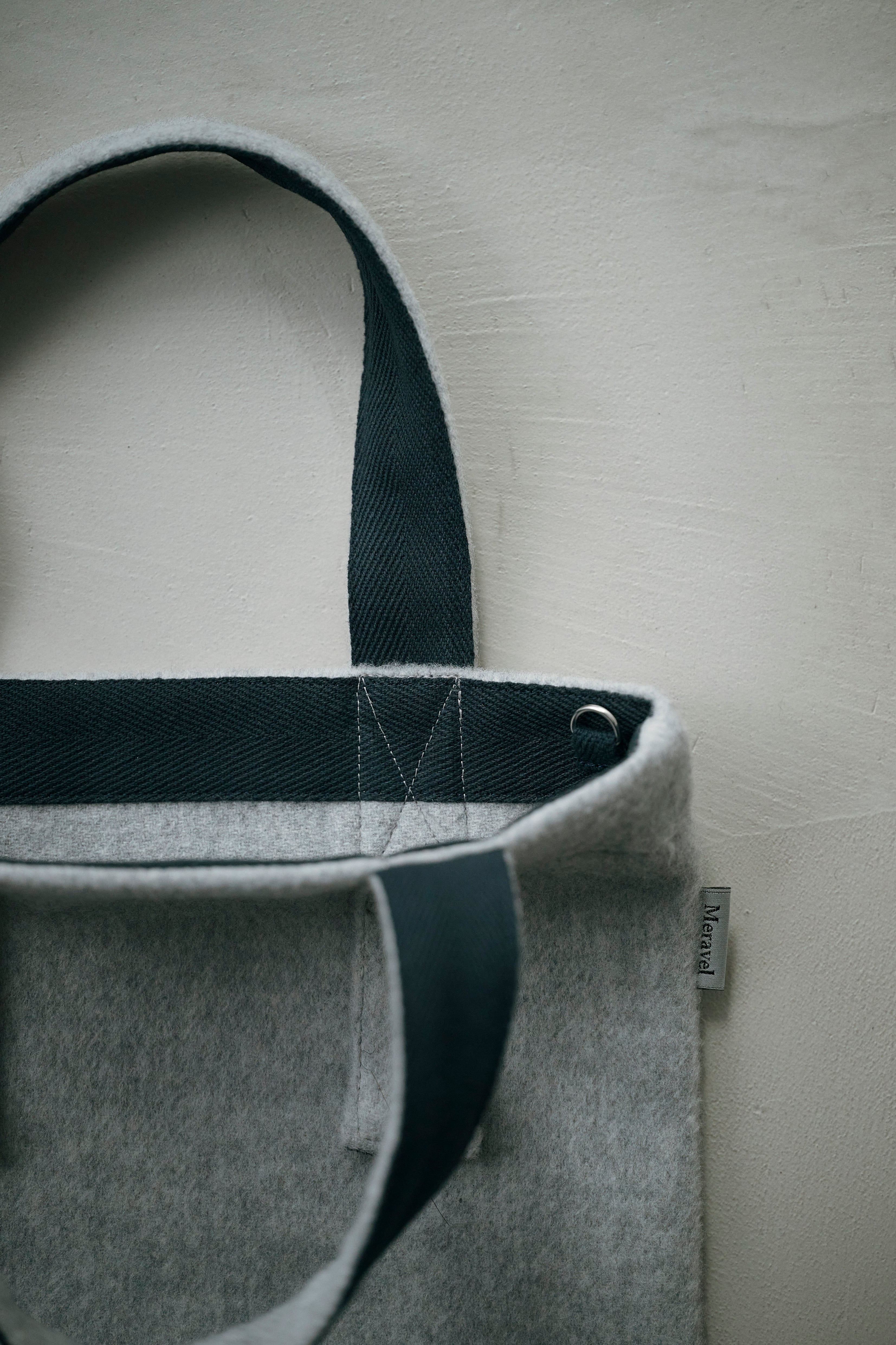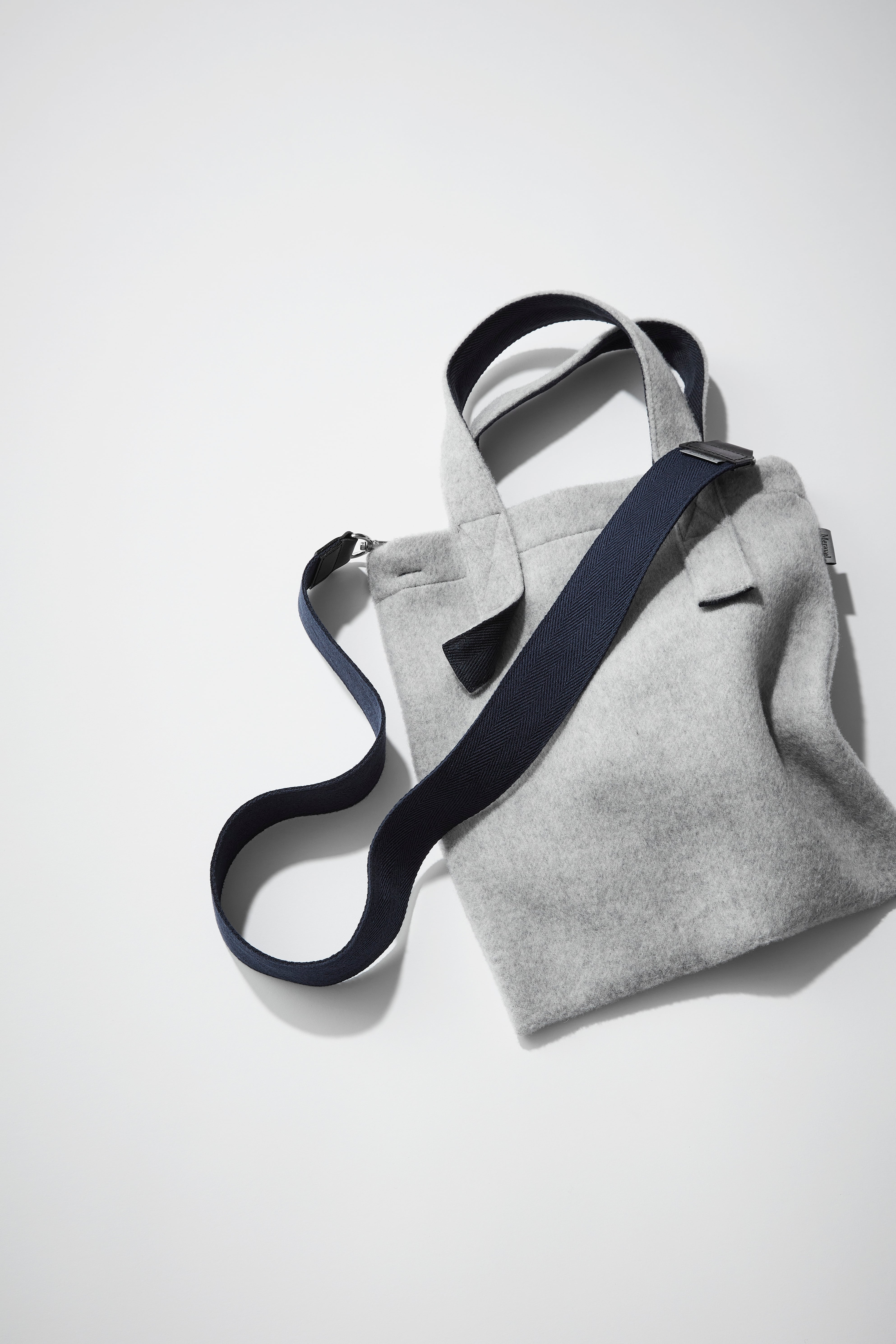 ウール素材を使った縦型のバッグ。
